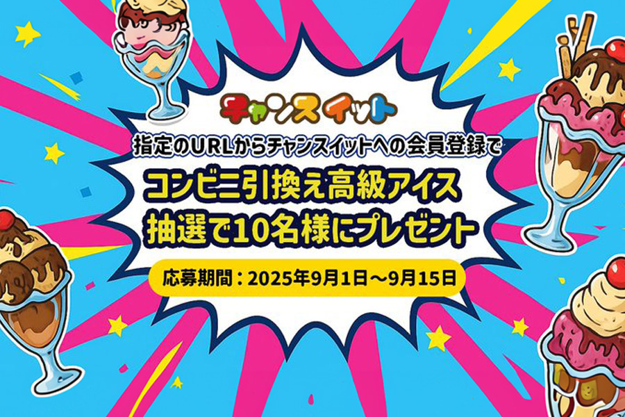 チャンスイットにてキャンペーン開催中!!新規会員登録いただいた方の中から抽選で10名様にアイスが当たる🍦